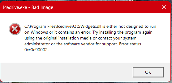 Windoze defender blocked icedrive app from opening. however adding this file to the exclusions enabled icedrive to work as normal. Defender flagged it as it containing an error.